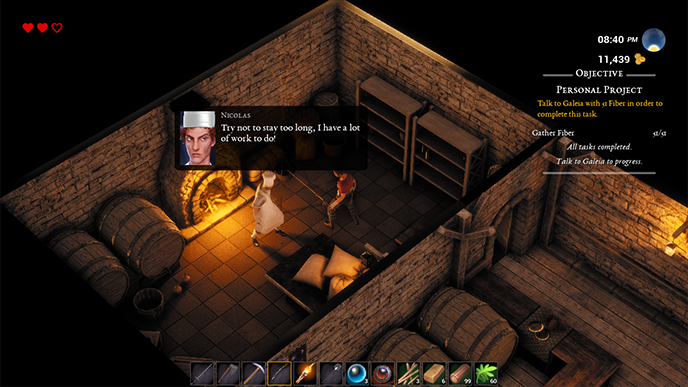 Bear in mind I've taken some "developer liberties" and accelerating some of the moments in the game, otherwise the quest would have taken a bit longer than what I've shown. This is mostly related to crafting and NPC schedules.