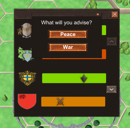 When you open the diplomacy UI, did you know that the coat of arms are clickable? Well they are! You can advise your King/Queen to go to war, advise peace or even an alliance.