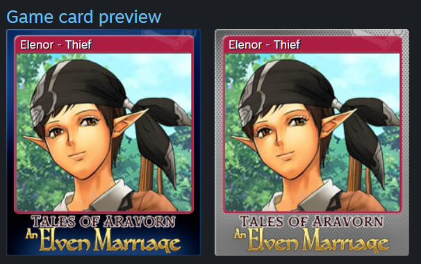 For the main characters Saren/Elenor I decided to have them show up in the card in one of the many outfits, in this case the Thief class outfit. In the next spin-off will have them appear as other classes.