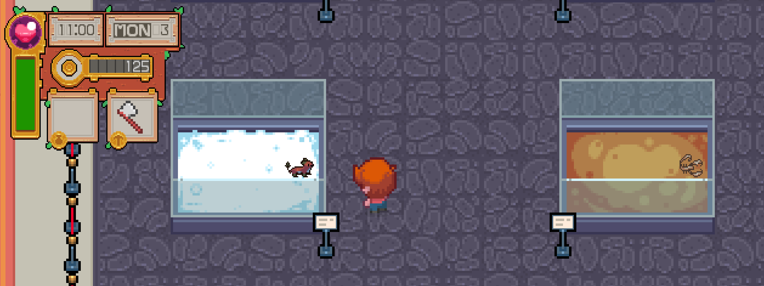 - A new upgradeable area in the town where you can create Hal’s research dream of an open space for wildlife - You’ll be able to donate creatures, or have them arrive naturally based on terrain - Small animal displays as a new creature type to collect (and a cage & baiting system to do so!) - Animal produce displays, museum-style - A tourism score that can help with costs, and attract new characters to Autumn
