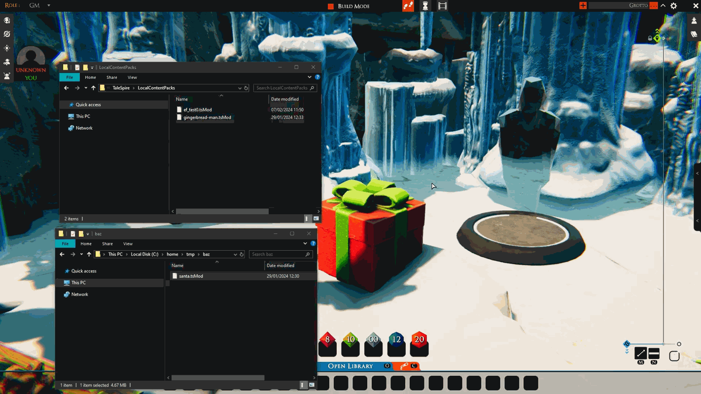 You can drop those mods into a folder, and TaleSpire automatically finds them and makes them available.