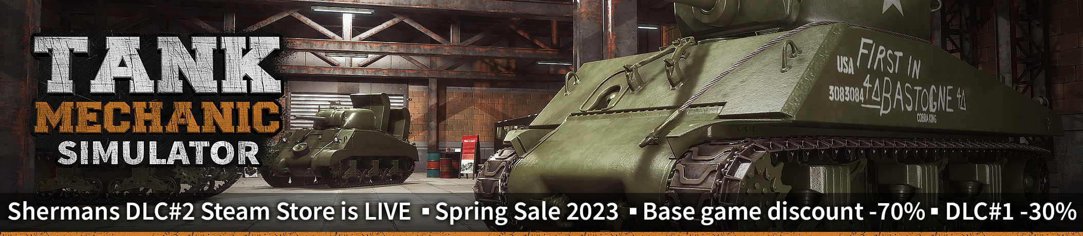 Together with the release of steampage for our DLC, we have prepared a discout for both Tank Mechanic Simulator and its DLC - First Supply to celebrate Steam Spring Sale!