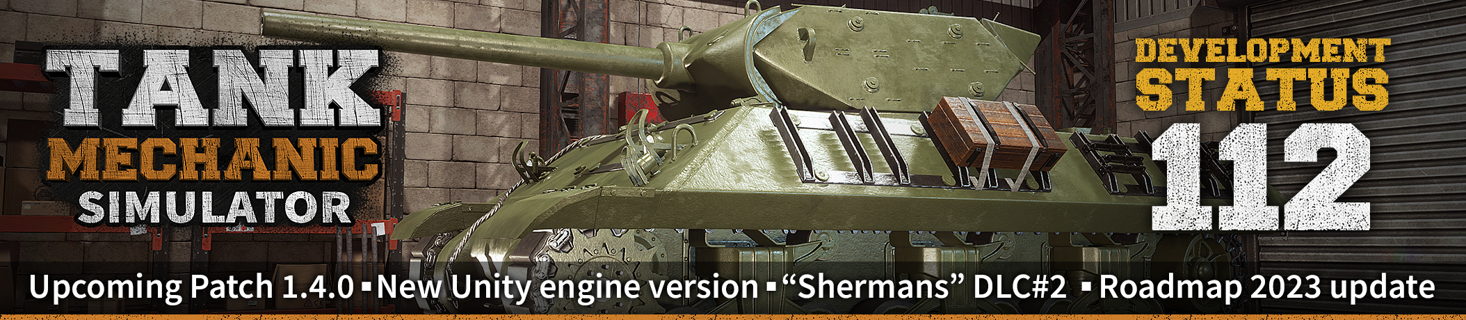 Stage 5 is now Stage 1 and Stage 2 is now Stage 4…. But one step at a time - we need to lighten things up a bit on what we are currently working on and what is coming up. The last few months have not been easy for us, we've had to stop updating the game a bit now and then to take a deeper breath and focus on development and further patches - and we have a lot of that. As a result, we need to change the scope of what we planned and reorganize it a bit. We've also switched to a new version of the Unity engine, a switch which has not been without its slight setbacks that we've had to fix. As you probably know, we are working at full speed on two of our games - Tank Mechanic Simulator and Tank Squad. From January this year, we are preparing a major update to TMS, numbered 1.4.0, which will include a new Stage 1 and part of Stage 5, along with the release of the second DLC#2 with Shermans tanks.