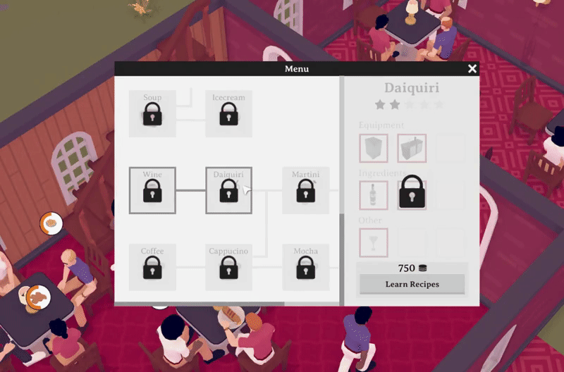 I also reworked the menu window slightly to make it a bit more intuitive to see the dish unlock requirements.
