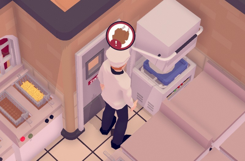 In this update employees adhere to their zones very strictly again, and I added notifications whenever zoning related issues are a bottleneck in an employee’s efficiency. This is communicated by displaying icons of out of reach items above the staff's head, and messages.