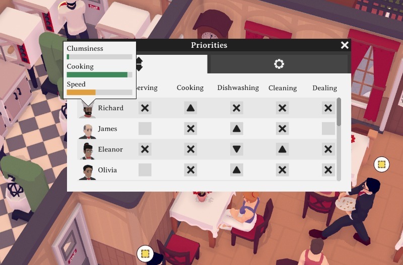 I also added a tooltip in the priority window. This enables you to see an employee's stats without having to switch windows.