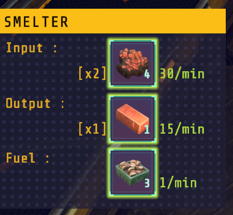 Perhaps the largest batch of changes comes with what we’ve done for the oft-requested in-game metrics. First, you’ll find that metrics will appear for built and placed machines in the bottom-left corner of the screen as you’re looking at said machines. We know getting these metrics in-game is a huge win for players, and it will improve over time as we enhance the UI. Until then, get optimizing!