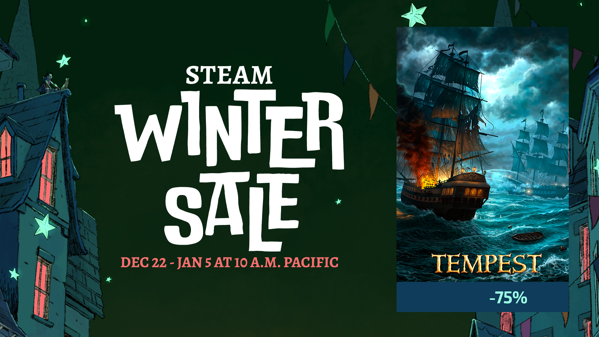 From December 22 to January 5, join the pirate crew and take advantage of generous discounts on Tempest and its expansions during the Steam Winter Sale: