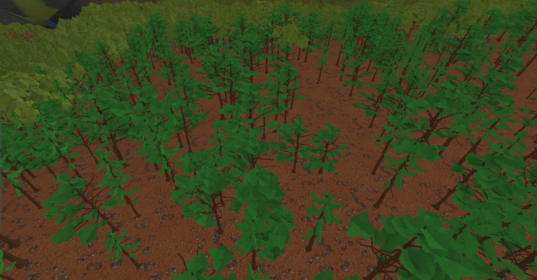 The most important change is to the camera system. The current camera uses an orthographic projection, which makes everything the same size no matter how far away from the camera it is. The camera scale is changed as you zoom in and out, but there is no perspective- if you look downhill the trees at the bottom will be the same size as those far away. You can actually crash or vastly slow the game by looking downhill at the wrong angle and overloading the level of detail that is rendered. An orthographic camera makes a bunch of things about moving and zooming the camera easier but adding animals required a lot more care for how the game looks at close zoom levels, so it had to go. We now have a proper perspective camera with varying levels of detail depending on how far away things are, and smooth transitions in between. There is a lot of complexity behind this and it's been the majority of the work since the first release.