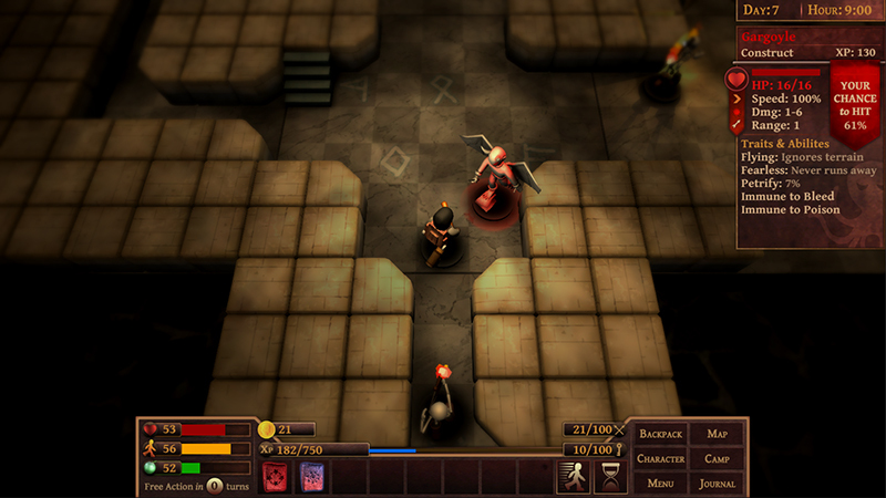 Last week, we mentioned about gargoyles and how they can be found sleeping sometimes. We playtested a bit and found that it is more fun to play if they always spawn sleeping. They spawn near the doors and entrances and trying to find an optimal route to navigate the dungeon without waking all of them up at the same time is a small puzzle itself. Invisibility and teleport comes really handy in tight situations.