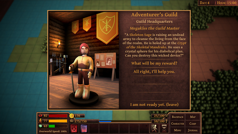 Hi Everyone, Last two weeks we worked on improving the Adventurer’s Guild for the next update. Just like the Artisan’s Keep, the hero will be able to visit the guild master, take on quests from him, gain reputation and earn rewards from the Guild’s Treasure Vault based on his reputation.