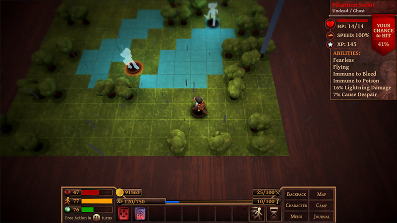Another addition is shallow water terrain which slows the hero and the enemy but not the aquatic or flying creatures. Shallow water increases lightning damage too.
