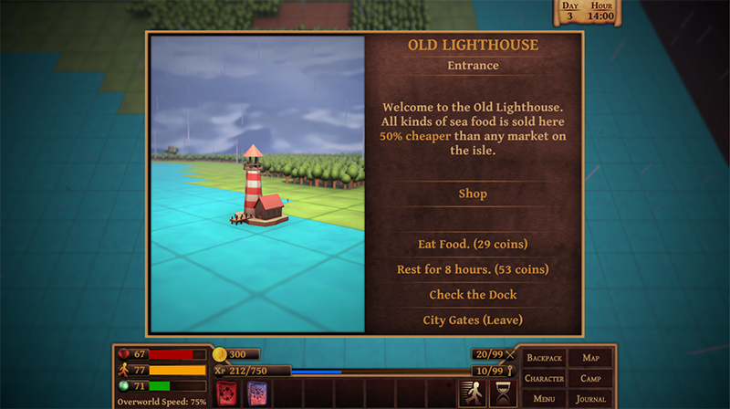 On the overworld, we reduced number of towns so completing all quests from all Lords becomes a more achievable target. However, we added a new specialized building: The Old Lighthouse. The Hero can rest and eat at the lighthouse. It has a shop which sells cheap seafood. We added new seafood to make this market all the more colorful. At the docks, there may be an NPC giving you package delivery or escort missions.