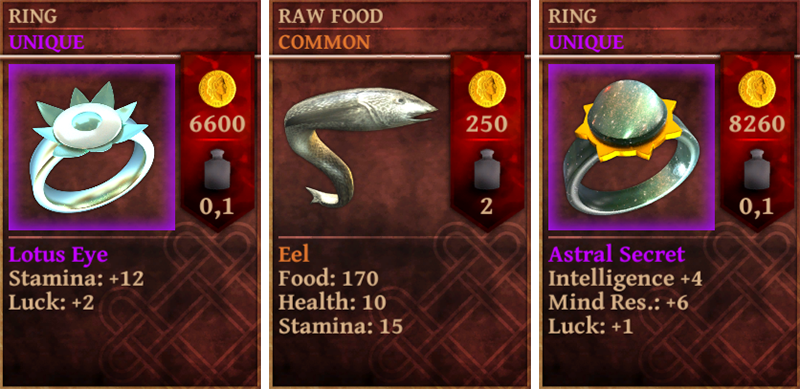 We are also adding unique items to the game. Unique items will come up only once and their stats will be generated when they are found according to the hero level. For example “Lotus Eye” ring will have +20 stamina if hero finds it at level 5, +30 stamina if hero finds it at level 10. They will have base/minimum stats but in every game they will have different stats.