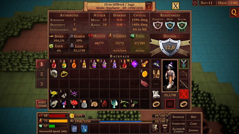 Another improvement is made regarding hunting incidents. When hero finds the tracks of a deer, either at the camp or as an overworld incident, he had the option to follow the tracks. We realized this option was not working as intented. It always found two deers no matter what, although it should have been a Wilderness Survival skill check. But this will be corrected and improved with the next update. Based on the hero’s success at the skill check, he will be able to find more or less deers. If he rolls a critical success, he will find three instead of two deers. Critical failure will also be a thing and it will spawn a forest enemy like snakes or giant centipedes. We will test and fine tune this feature.