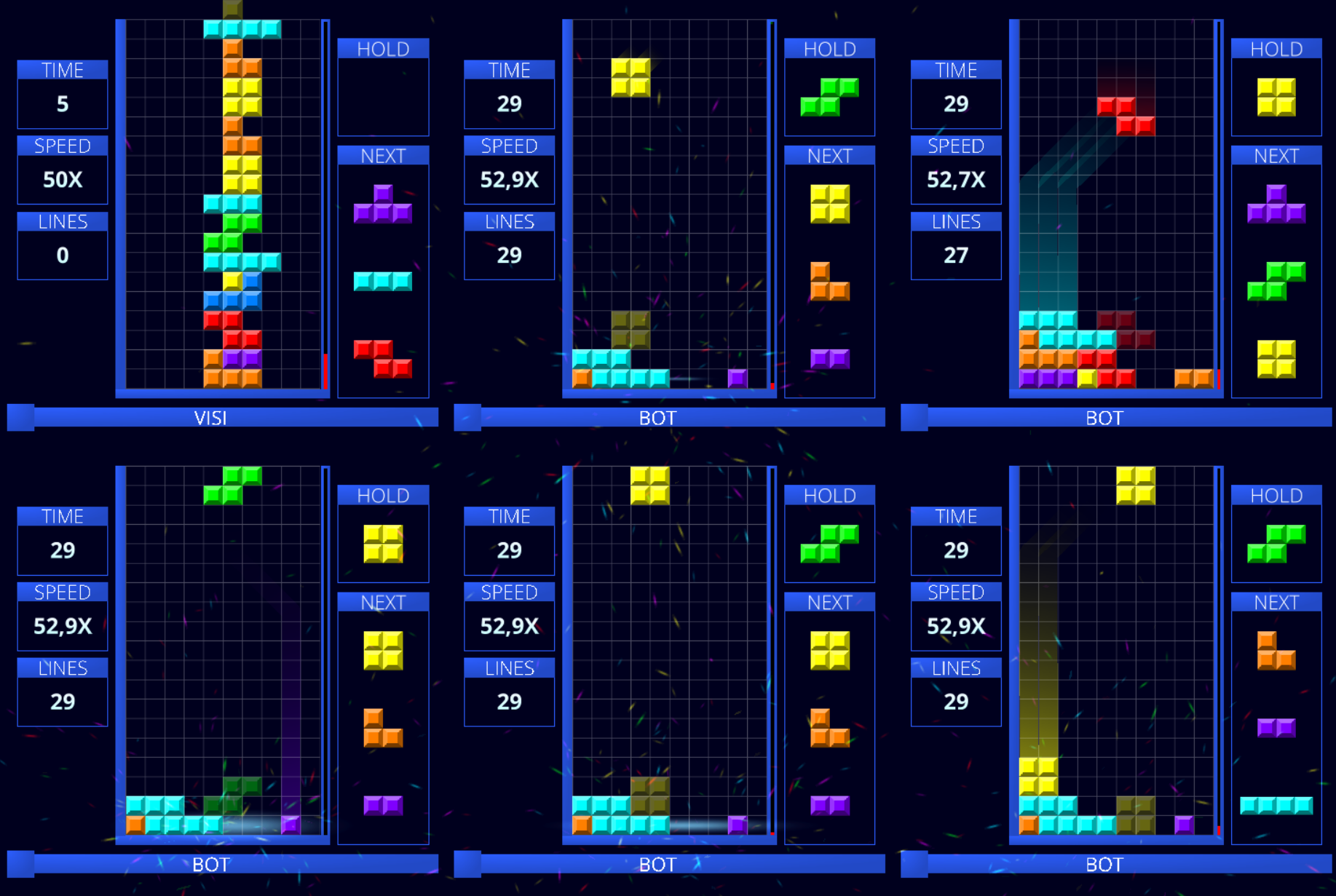 In this update, AI cantrolled bots has been added to the game. You can choose between 4 difficulties (easy, medium, hard & extreme) and challenge them in