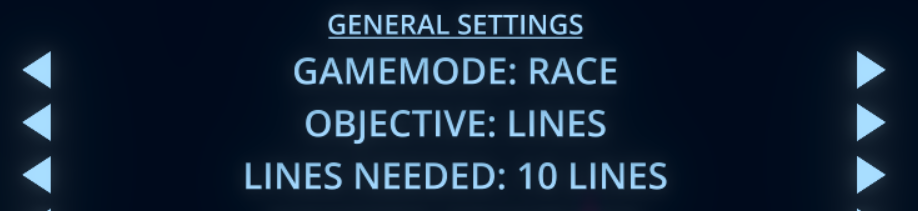 There are two options for this gamemode: the objective type (score, lines, color lines...) as well as the quantity required to win.
