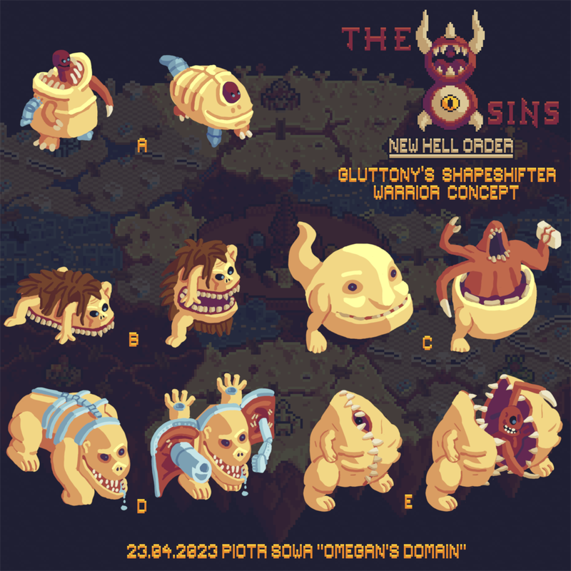 Like in The 8 Sins I will take you to a surreal weird world in randomly generated dungeons where our heroes not only will gain experience, but also morph into a stronger form.