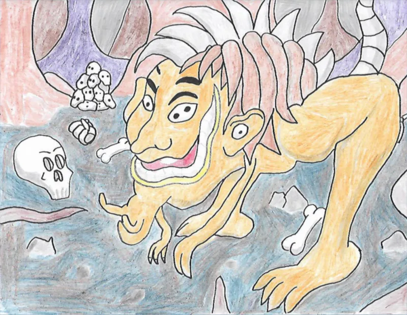 Here is an expanded character sheet where on the left I add fields to show what currently is working on this creature, starting from the top: aura (cast by abominations), mixture, spell and states of mind, soul and body: