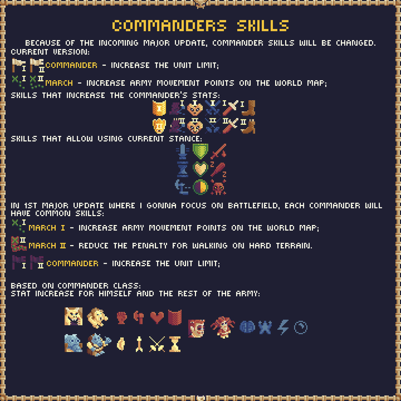 = Ending = After releasing the update with a fixed battlefield and with a lot of concepts that I made with the prepared UI, work on major updates should be easier and from the graphics side I can focus on making complete animation sets of all refreshed units. And was thinking, about how my game can look if I gonna increase the screen size by double: