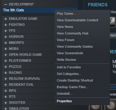 1) Right click on game and select properties