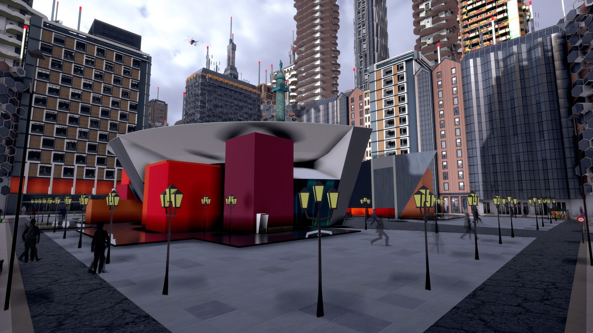 This week it's a refreshing project with a big mix of designs that we liked so much that we're the new Architect of the Week. Congratulations to tomak.chaffe and his project for the Place Vendôme. Imagine a crowded and overcrowded Paris, with large futuristic buildings to house all the citizens. The place is like a refreshing point in this almost suffocating circle of high buildings.