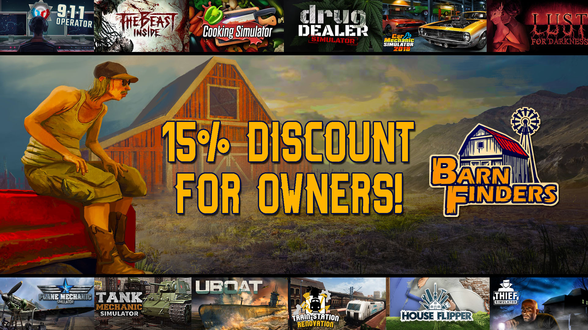 Anyone who owns our game will get the 15% Loyalty DISCOUNT when buying Barn Finders, which releases on June 15th - the discount option will be displayed on its store page.