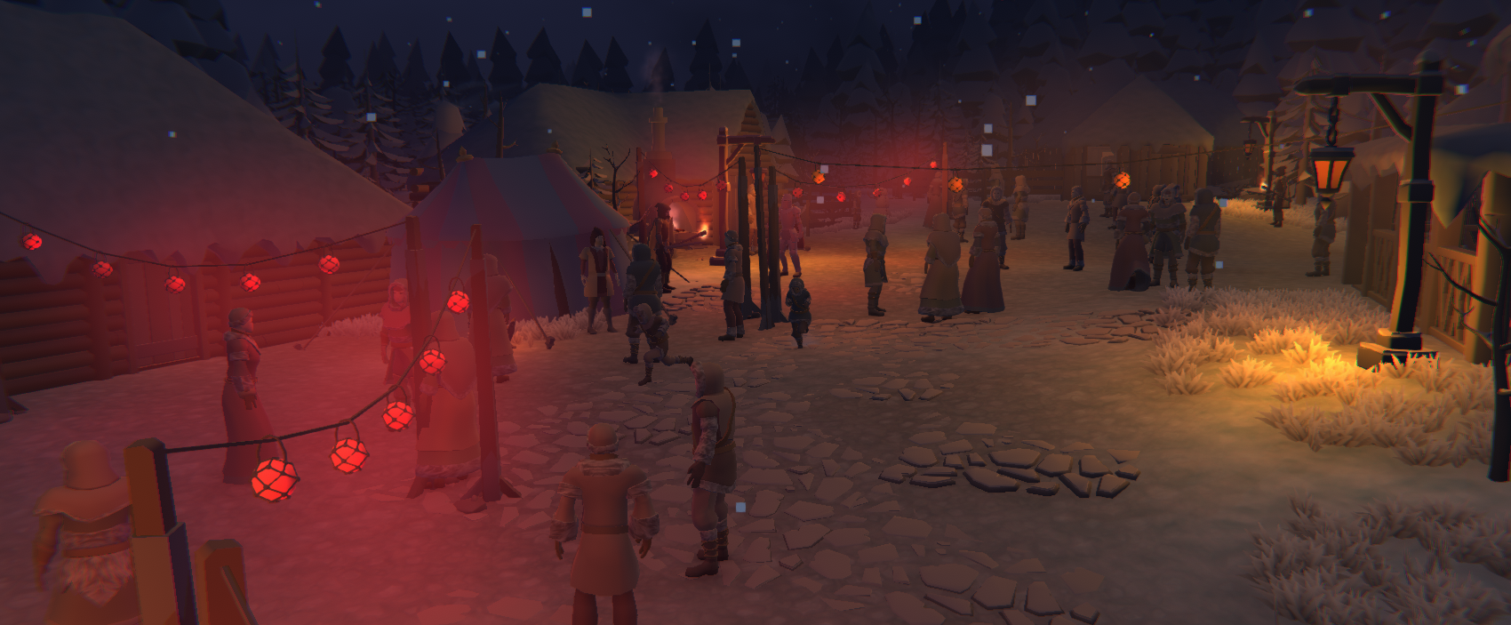 The road leading northeast from the City of Thornhill now brings you to a trade station, where you can join a merchant caravan traveling to Winterpine Forests in the far northern reaches of the realm. The caravan parks just outside a cozy little village - the Evergreen Hearth - where the villagers are set to celebrate their traditional Hearthlight Festival.