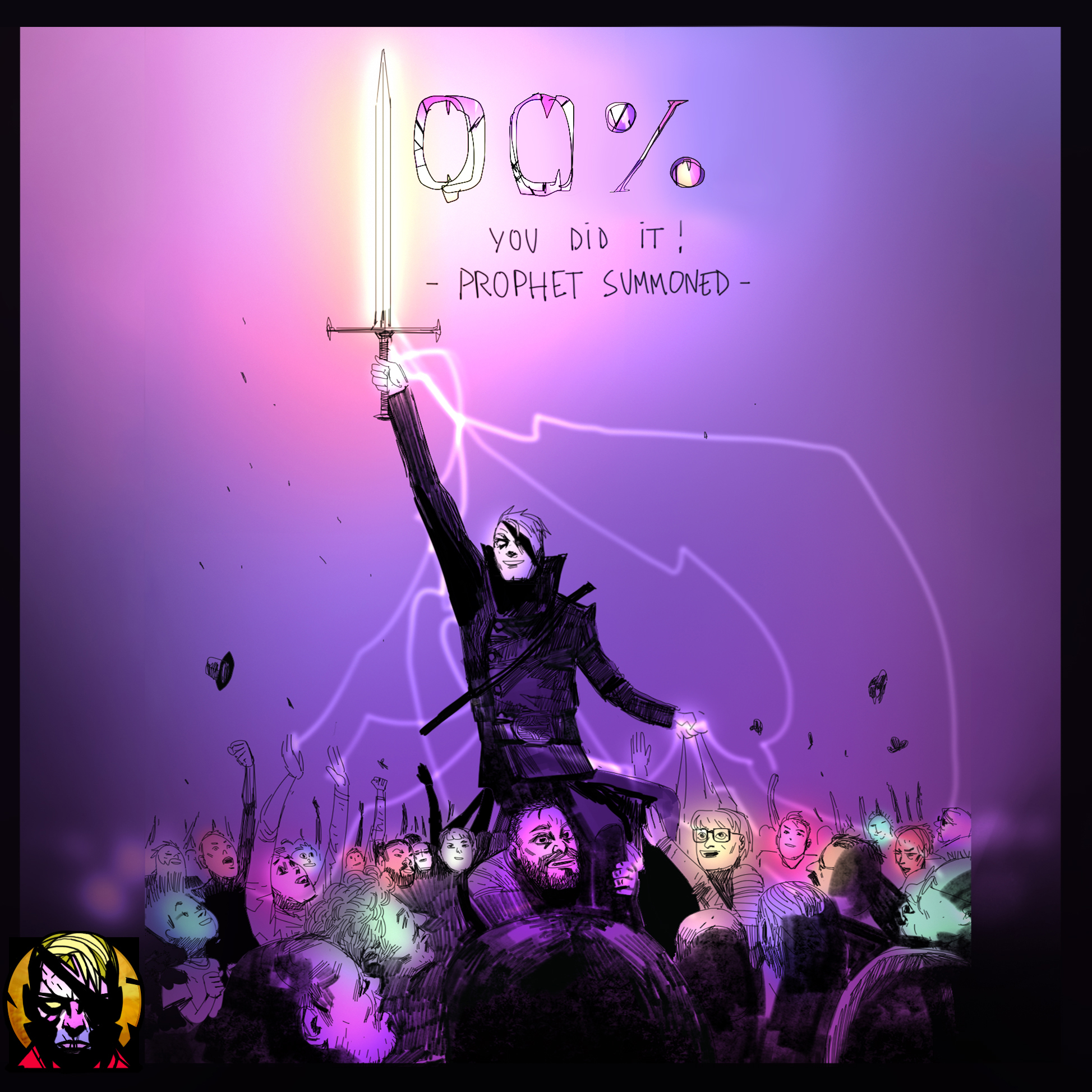 You did it! The main goal of the Kickstarter campaign for The Blind Prophet passed 100% of completion! Simple words couldn't describe how grateful we feel right now, so we decided to make a special "thank you" sketch on this particular occasion. How do you like it?