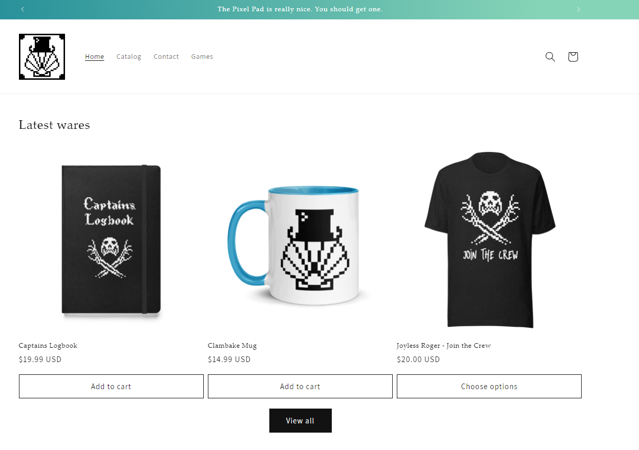 Hosted by shopify and printed by printful (not painstakingly handcrafted as usual) all high enough quality for this Captain's standards!