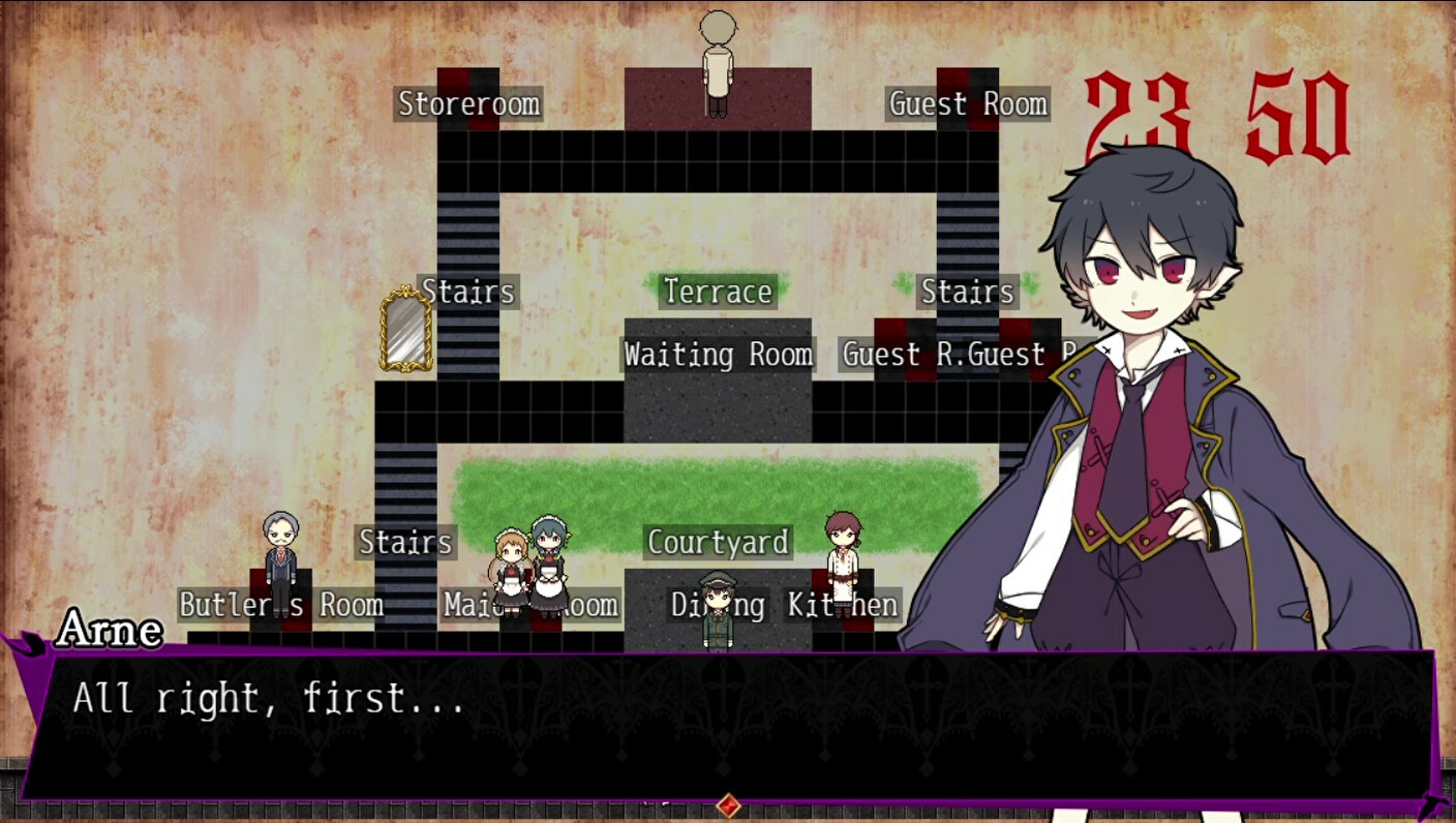 This title is a full-fledged mystery game in which the player solves bizarre cases involving non-humans. Arne's Case Files," available on Steam, includes Case 1 (Teil. 1 - Teil. 3), in which Lynn, the daughter of an aristocrat, along with Arne, a vampire detective, takes on a murder case in her own mansion.