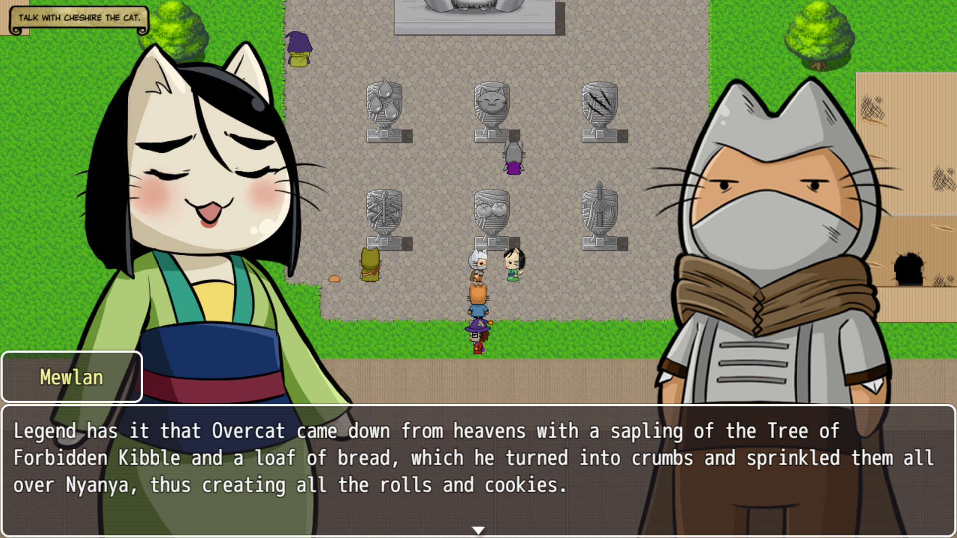 The Chronicles of Nyanya – a game created by hamstercube and published by Fat Dog Games – is now available. It’s a cRPG set in a world of cats dressed in funny costumes, full of cat magic, triis, gods and other cat-centric stuff. Humour, memes and pop culture references are the pillars of this production.
