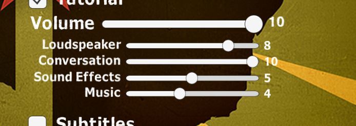 Much-requested multiple volume sliders for conversation, loudspeakers, sound effects, and music all separated, so you can balance and mix the volume how you like it. The loudspeaker voices are a bit quieter by default.