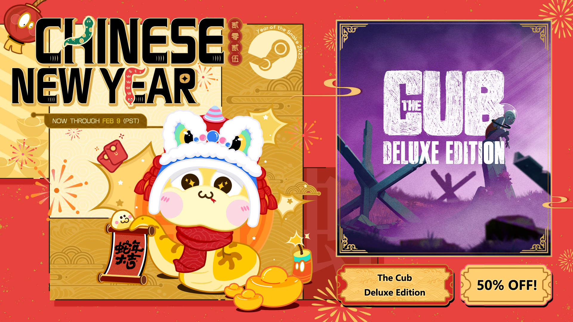 To enhance the celebrations, weโve made sure that not only can you acquire a lot of our games at great prices, but they also come in their most shiny, opulent, versions. One of those firecrackers of a deal is The Cub Deluxe Edition, and from January 26th to February 9th, you can get it at a jaw-dropping discount as part of the Chinese New Year Sale 2025. ๐