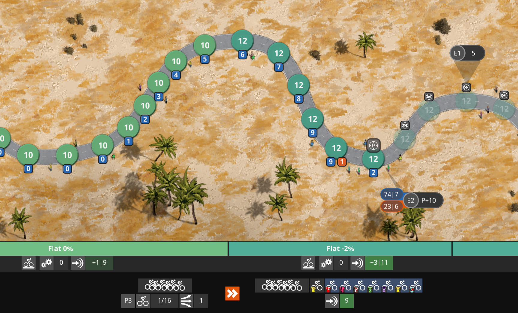 A very large change that at first might seem small is a change to slipstream on easy flat and downhill terrain. Both the slipstream bonus as well as the maximum slipstream values have been increased for that terrain. This has all kinds of consequences, like non-flat proficient riders hiding in P3 not being wasted before they even get to a final climb, escape groups being more viable in general and having better chances at winning, sprinters being better in general because groups are more sticky (on easy terrain), etc.