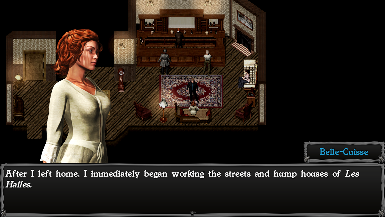 Certain choices will also lead to cut-scenes that can advance the clock by a longer period, such as if our protagonist decides to spend some "quality time" with one of the ladies of La Fleur Rouge.