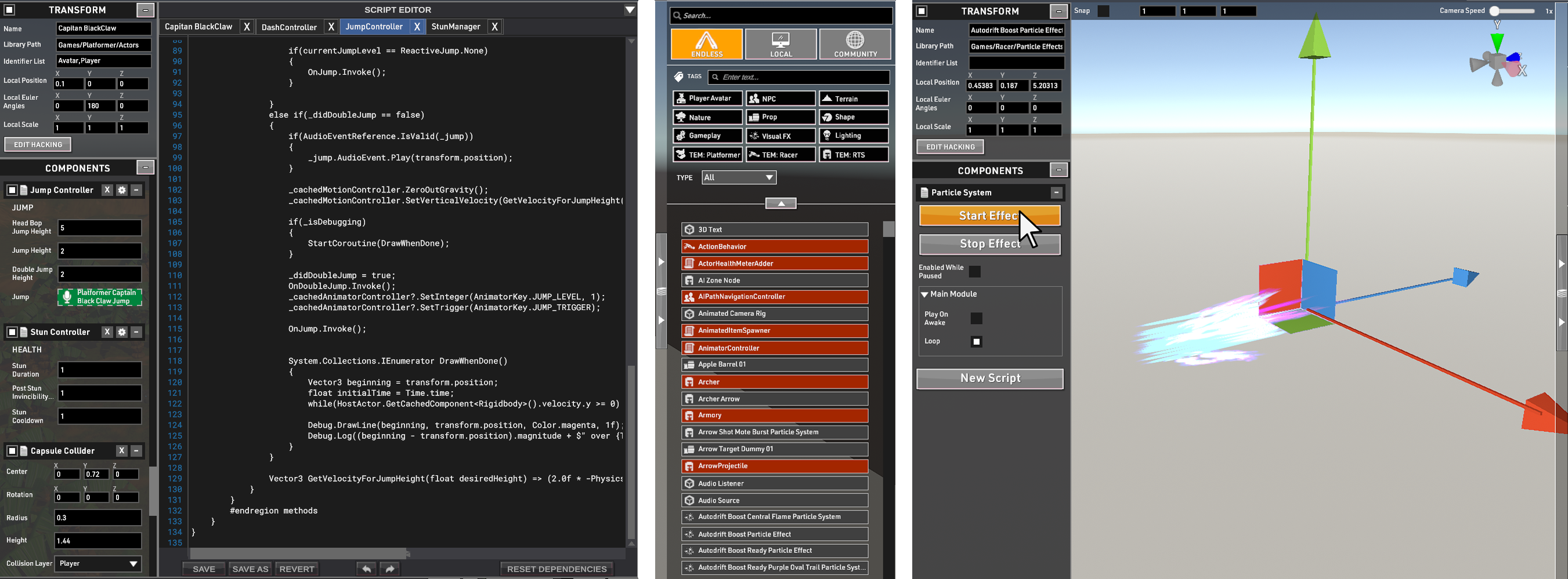 Huge particle effect overhaul. Particle effects can now be previewed in the editor properly, including start, stop, and looping behaviors. As a result, we redid all the particles in the game, which may mean previous UGC games are now missing their effects, and need to be replaced. Check your games!