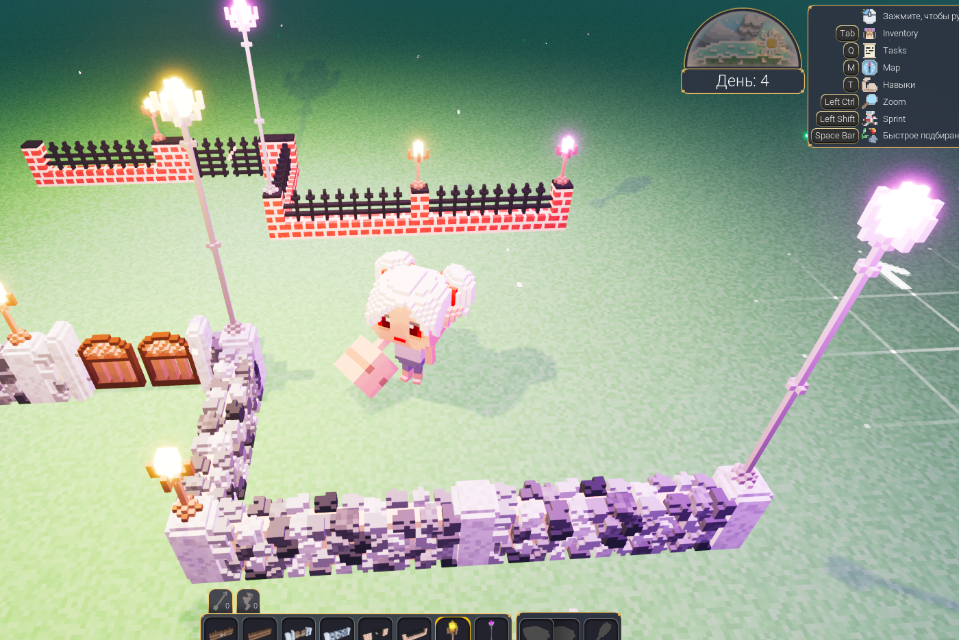 Item stacks have been increased to 100 pcs. You can put lanterns on stone and brick fences