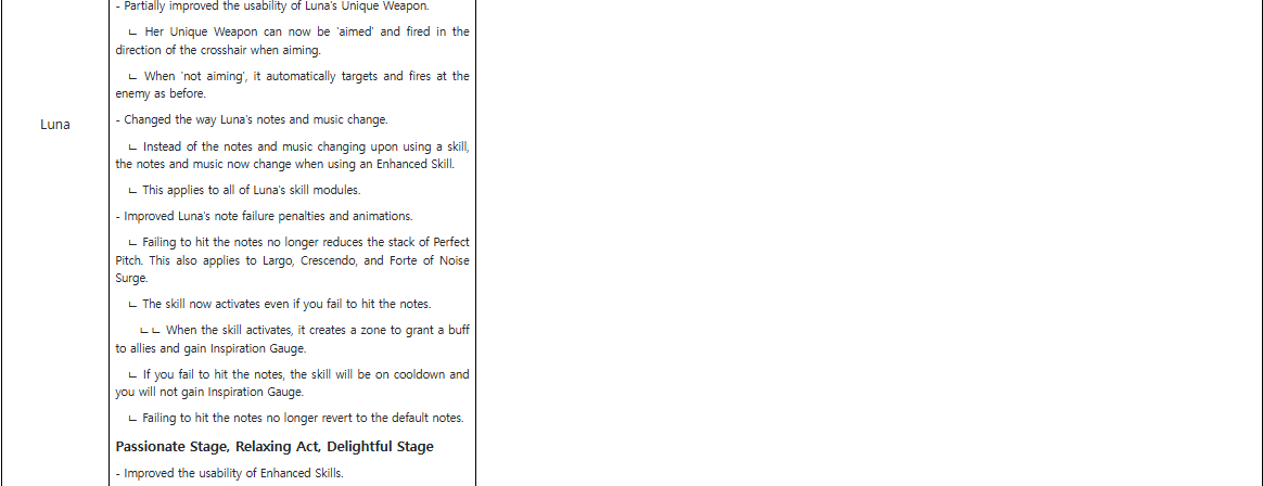 - Fixed an issue where the Inspiration Gauge's maximum value was applied differently from the skill description window when Luna equipped the ‘Nimble Footsteps’ module.