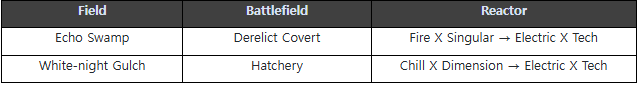 (6) Reactors - Added the Electric X Tech Reactor condition to the Reactor Difficulty Reward (Rotation Reward). - Changed the Attribute type X Arche of Reactors that are fixed drops in some Battlefields on Hard difficulty.