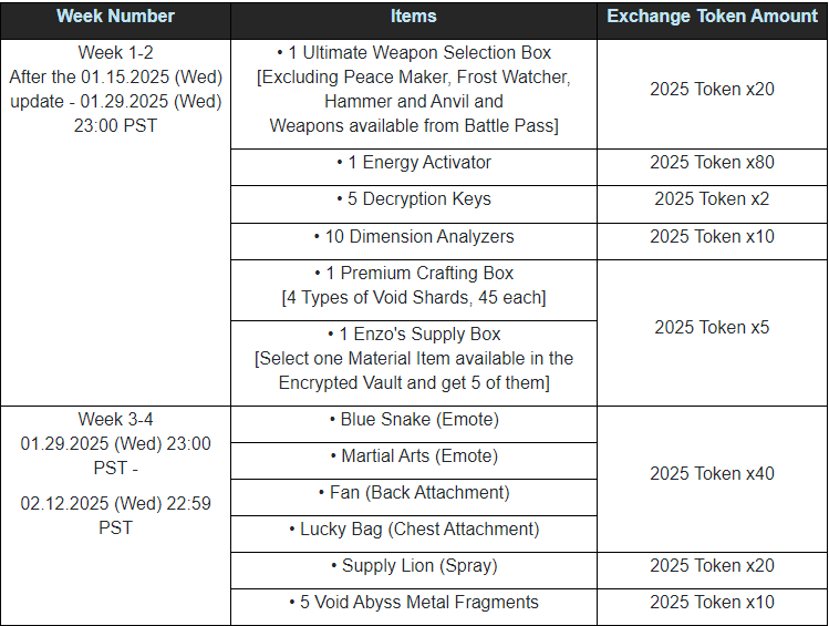 - Please ensure you claim your rewards before the mailbox expiration date, PST 2025.02.05 (Wed) 22:59.