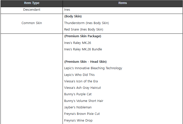 - Added a new Descendant, Ines. ㄴ You can acquire research blueprints, codes, and materials from the Void Vessel Hard Difficulty.