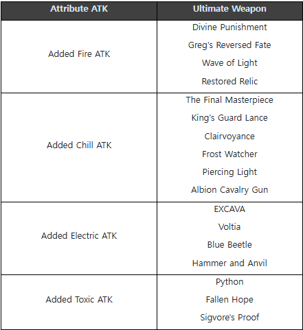 - Basic Attribute Damage has been added to some Ultimate Weapons.