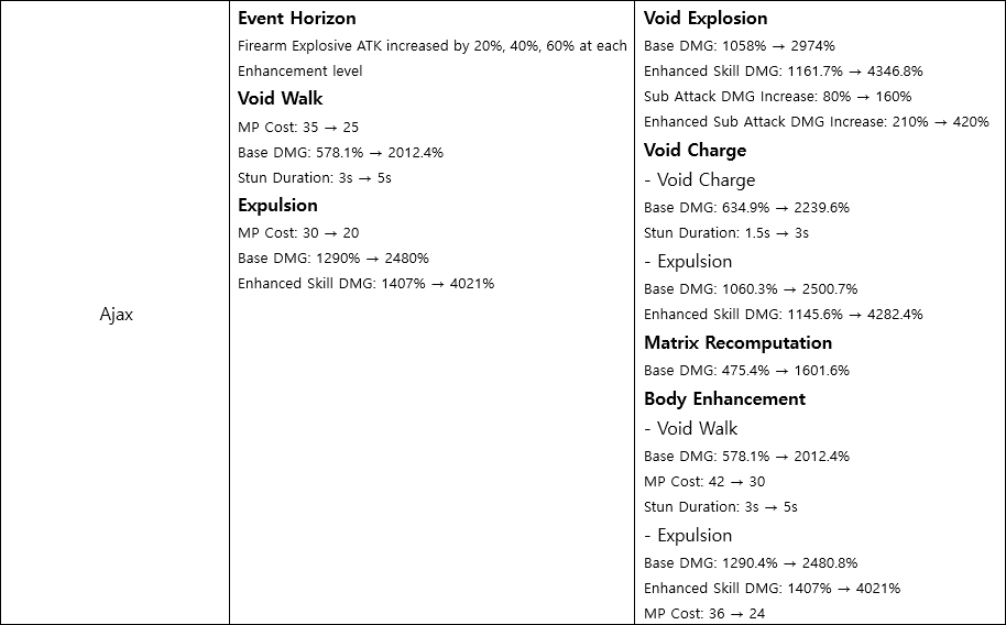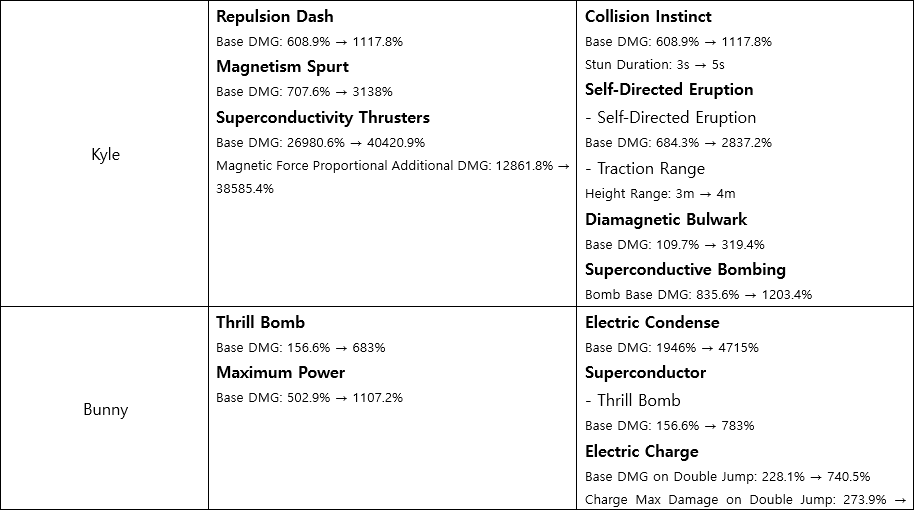 (4) Miscellaneous - Changed the 'Latent Strength' effect in the 'Unpredictable' 4-set External Component effect from 'Skill Power' to 'Base Skill Power Boost Ratio' with adjusted values. ㄴ Skill Power 21% → Base Skill Power Boost Ratio 31% ㄴ The display in the External Component information window shows Skill Power-related items comprehensively, so it appears the same as above.