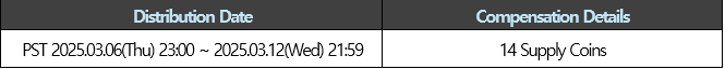 ■ Compensation Details - The rewards will be sent to your in-game mailbox within approximately 10 minutes upon logging in on the designated distribution date. - Please claim and use your rewards before they expire on PST 2025.03.12 (Wed) 21:59.