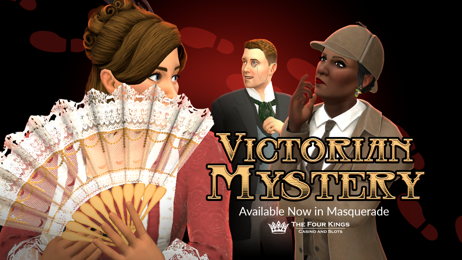 The game's afoot...uncover the curious secrets of the Victorian Mystery collection at the Four Kings Casino! An elegant wardrobe of clothing selections for daring detectives, dapper assistants, and mysterious wealthy heiresses — investigate them at the Masquerade store today!