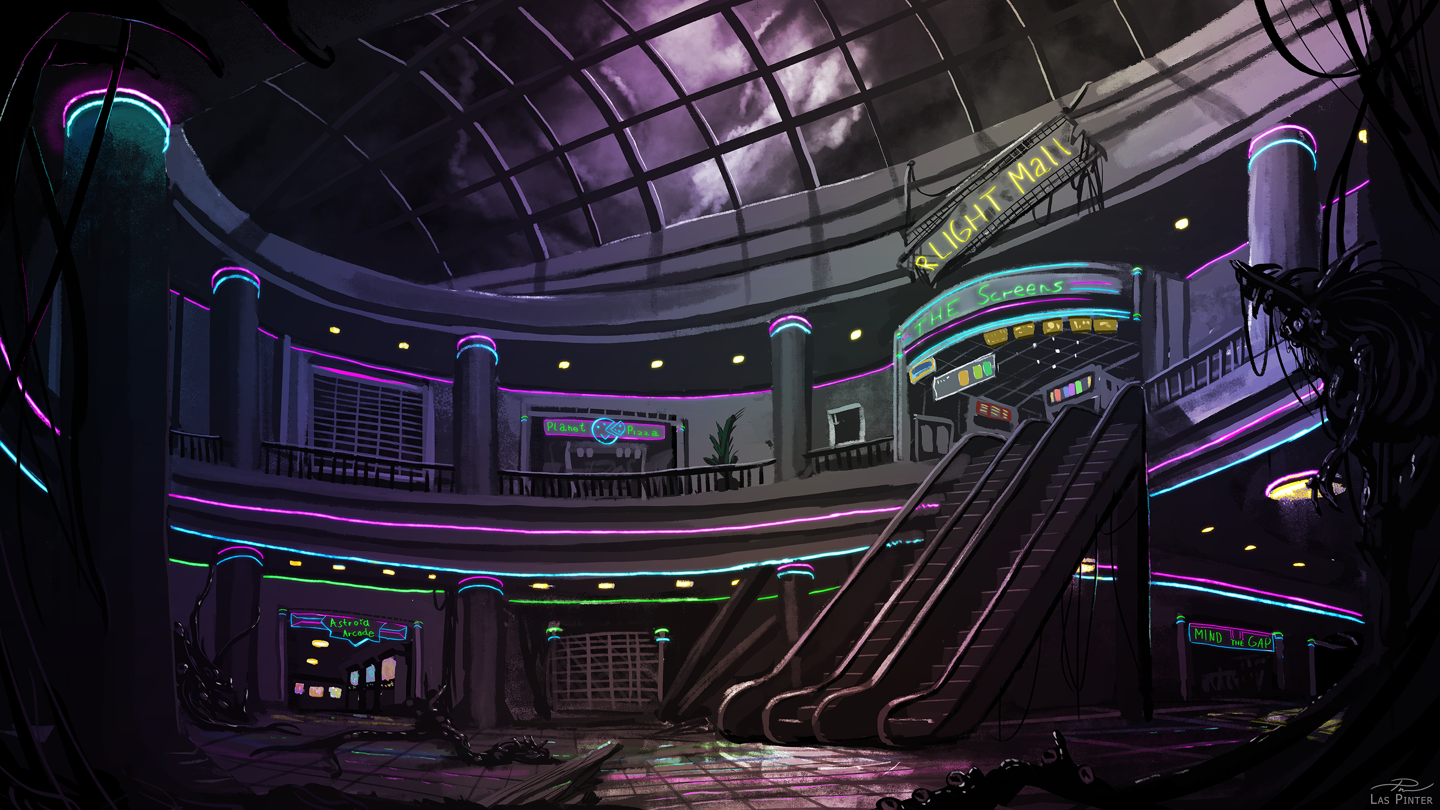 Farrow Hill is only the first setting we’re working on. Now we’re sharing some new concept art for a new setting! Because it's time for a night out at the mall! Starlight Mall!