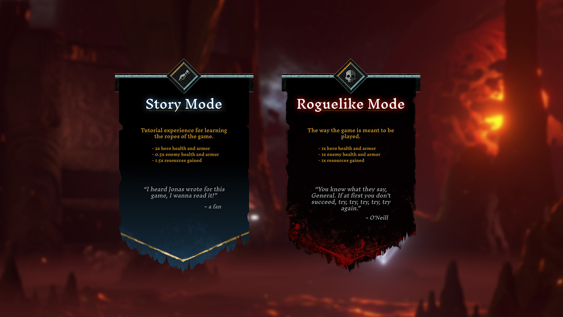 So our primary method of game difficulty stems from the combat itself. We want the game to be a bit on the harder side, because we want the loop of dying and trying again, having learned something new about the enemies and their skills. That said, some people might find the default difficulty too hard, and would otherwise put the game down. To that end, we talked about adding a Story mode of sorts, where the difficulty of combat is reduced to some degree. We’re calling it Story mode because its purpose is to allow people to focus more on the story of the game rather than the combat aspect (some people just want to read what Jonas&Verena wrote). In this mode, more resources would be granted, your Heroes would have more life and enemies would have less life.