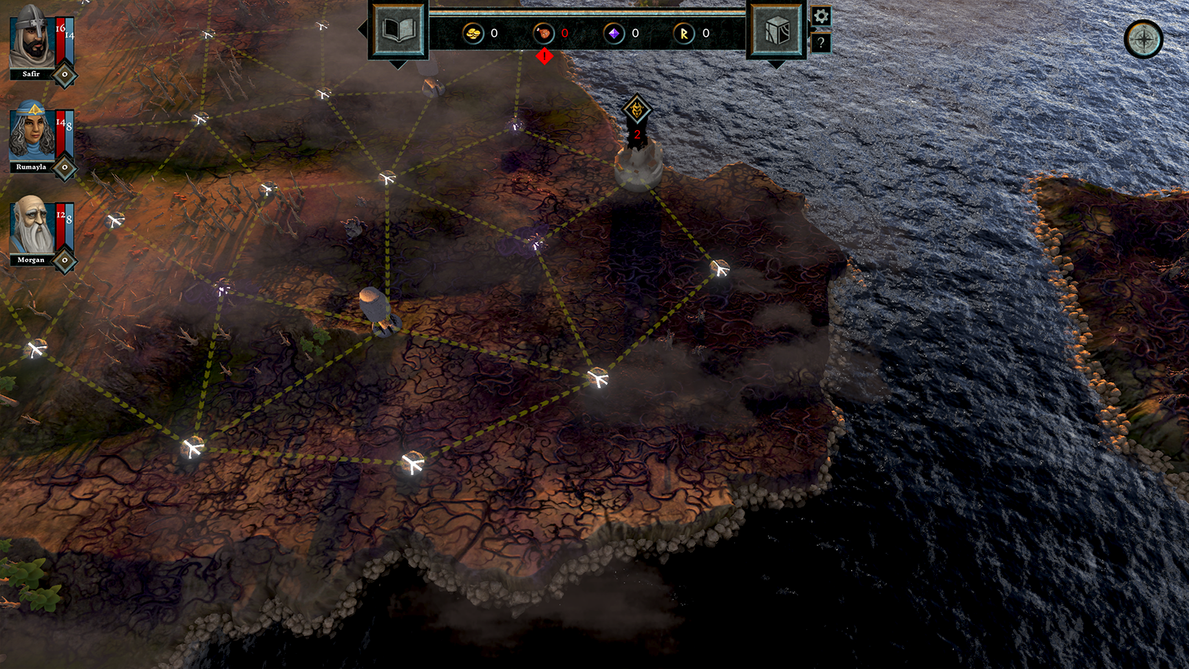 Lately, we’ve been discussing difficulty modes and how they affect the game. We decided a while back to add a lower difficulty mode to allow a wider group of people to experience the game. Hand of Merlin effectively has two different games in it. One is the tactical layer where you fight against enemies in a turn-based fashion on a grid, and where the chances are high that you’d lose Heroes. The other is the strategic layer where you move between a network of nodes and carve your path from start to end of the area, picking which locations and reward types you’d like to go for. There’s also a lot of reading here since all encounters are small short stories influenced by your choices. You can also lose Heroes on this layer, but it’s much more difficult to do so because that requires you to travel without supplies while your Heroes are low on health. Each jump to a new location without supplies does 1 point of health damage to all Heroes, and health does not regenerate without explicit healing actions.