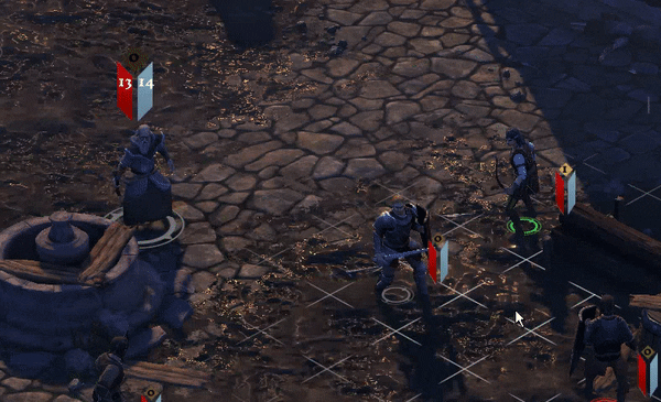 Since our game is set in a low fantasy setting with no actual magic (remember the quote that “any sufficiently advanced technology is indistinguishable from magic” ?), having grounded and subtle VFX fits perfectly with the game. Not that we’re always doing so, some aspects do need a more overt VFX to indicate stuff is happening, otherwise we wouldn’t be able to indicate that a unit gained a status effect that changes a stat that has no external representation!